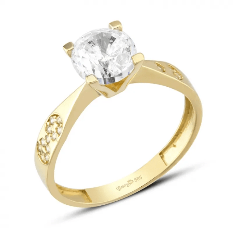 Altın Yüzükler modellerinden 14 Ayar Kalpli Tektaş Yüzük ürünümüz,