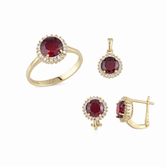 Taşlı Üçlü Set Takım Modelleri modellerinden 14k Altın Üçlü Takım Bordo Yuvarlak Taşlı ürünümüz, 8.00 gr ağırlığında 14 Ayar Altın.