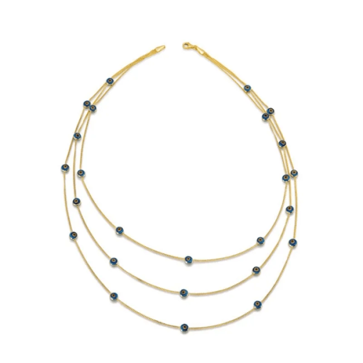 Altın Kolye Modelleri modellerinden 3 Zincirli Boncuklu Altın Kolye ürünümüz,