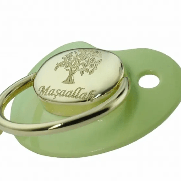 Altın Çocuk Takıları modellerinden Ağaç Desenli Altın Emzik - Yeşil ürünümüz,