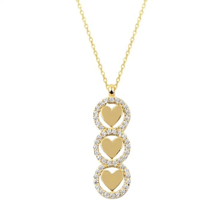 Altın Kolye Modelleri modellerinden Alt Alta Kalpler Kolye ürünümüz,