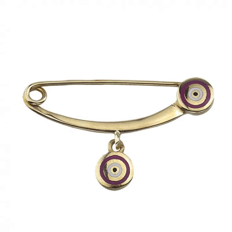 Altın Çocuk Takıları modellerinden Altın Göz Bordo İğne ürünümüz,