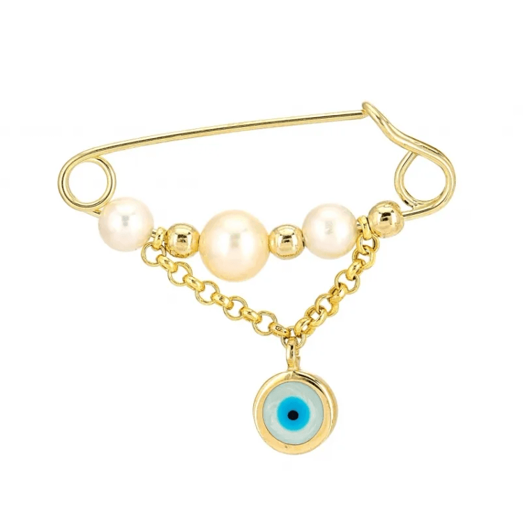 Altın Çocuk Takıları modellerinden Altın Göz İncili İğne ürünümüz,