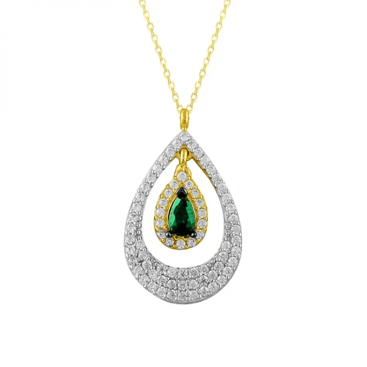 Altın Kolye Modelleri modellerinden Altın Kolye Yeşil Damla Taşlı ürünümüz,