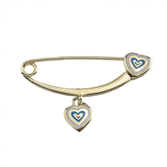 Altın Çocuk Takıları modellerinden Altın Mavi Kalpli İğne ürünümüz,