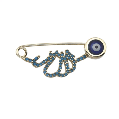 Altın Çocuk Takıları modellerinden Altın Mavi Taşlı Göz İğne ürünümüz,