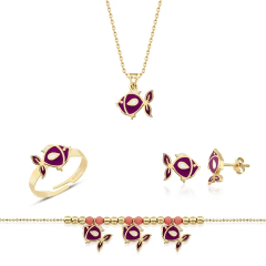 Altın Çocuk Takıları modellerinden Altın Mineli Çocuk Takımı Balık Mor ürünümüz,