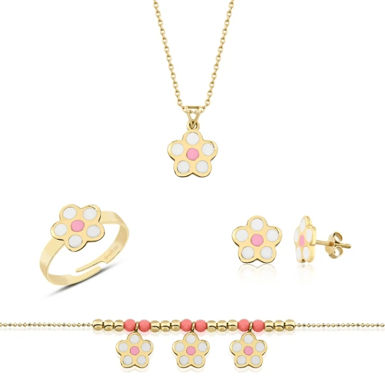 Altın Çocuk Takıları modellerinden Altın Mineli Çocuk Takımı Çiçek Pembe ürünümüz,