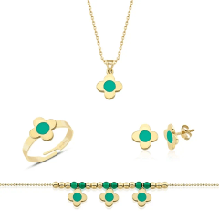 Altın Çocuk Takıları modellerinden Altın Mineli Çocuk Takımı Çiçek Yeşil ürünümüz,