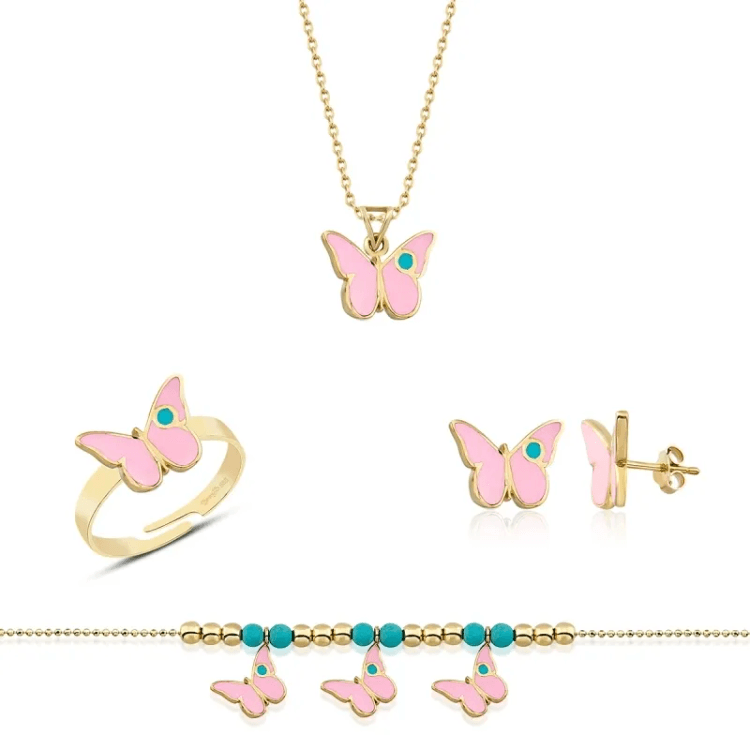 Altın Çocuk Takıları modellerinden Altın Mineli Çocuk Takımı Kelebek Pembe ürünümüz,