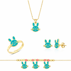 Altın Çocuk Takıları modellerinden Altın Mineli Çocuk Takımı Tavşan Turkuaz ürünümüz,