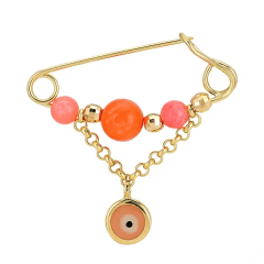 Altın Çocuk Takıları modellerinden Altın Nazar Turuncu Mine İğne ürünümüz,