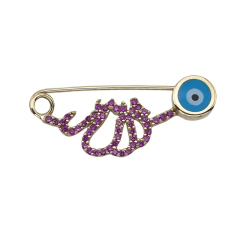 Altın Çocuk Takıları modellerinden Altın Pembe Taşlı Göz İğne ürünümüz,