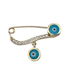 Altın Çocuk Takıları modellerinden Altın Sallantılı Mavi Göz İğne ürünümüz,