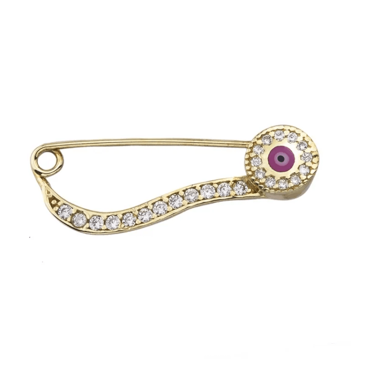 Altın Çocuk Takıları modellerinden Altın Taşlı Göz Pembe İğne ürünümüz,