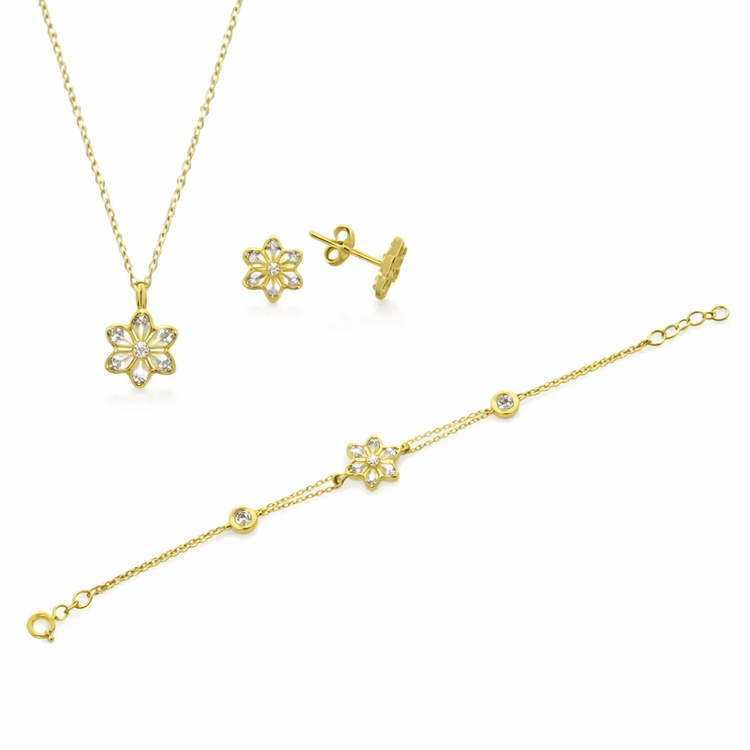Taşlı Üçlü Set Takım Modelleri modellerinden Altın Üçlü Mini Papatya Set ürünümüz,