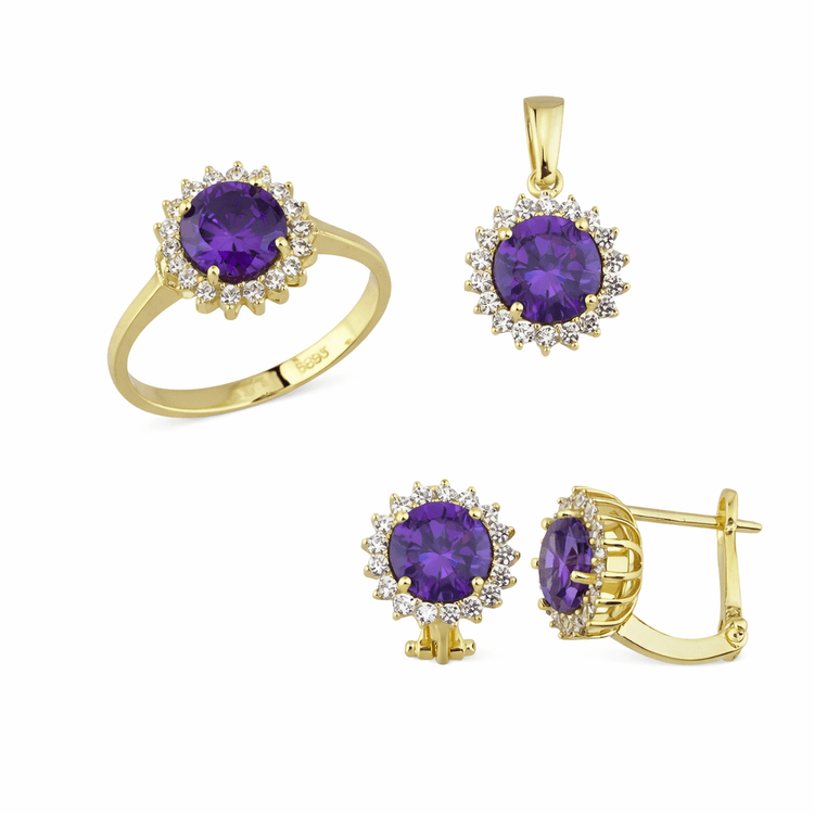 Taşlı Üçlü Set Takım Modelleri modellerinden Altın Üçlü Mor Takım ürünümüz,