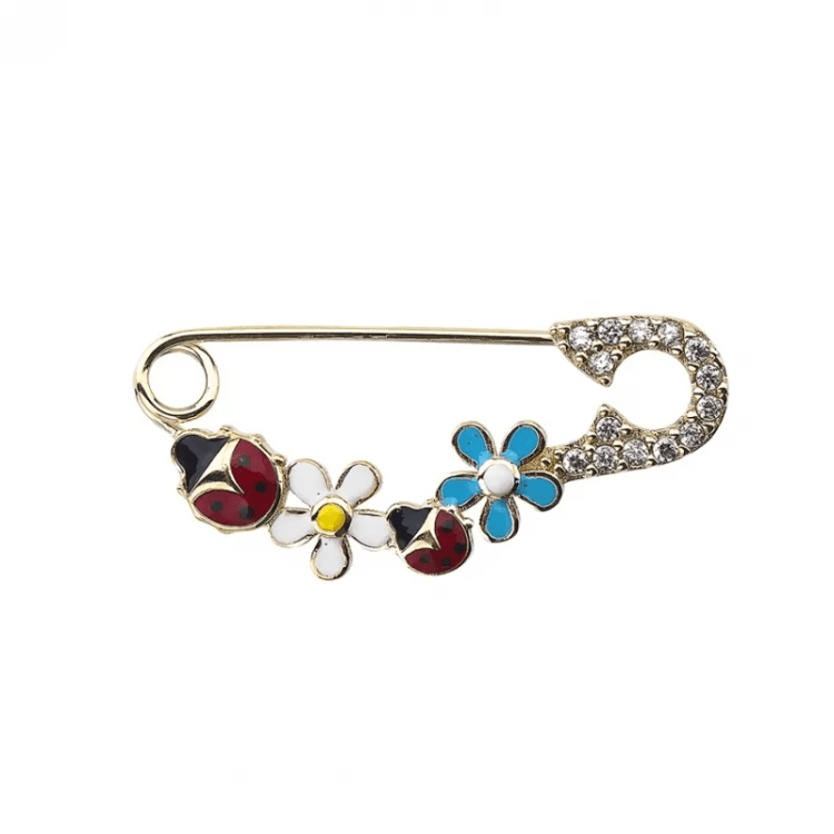 Altın Çocuk Takıları modellerinden Altın Uğur Böcekli Mavi İğne ürünümüz,