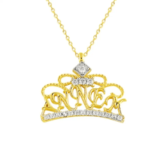 Altın Anneler Günü Hediyeleri modellerinden Annem Yazan Taç Kolye ürünümüz,