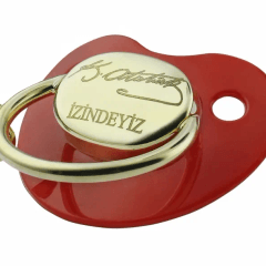Altın Çocuk Takıları modellerinden Atatürk İmzalı Altın Emzik -Kırmızı ürünümüz,