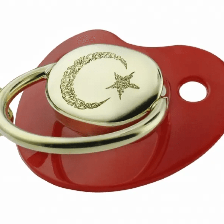 Altın Çocuk Takıları modellerinden Ayyıldız Altın Emzik - Kırmızı ürünümüz,