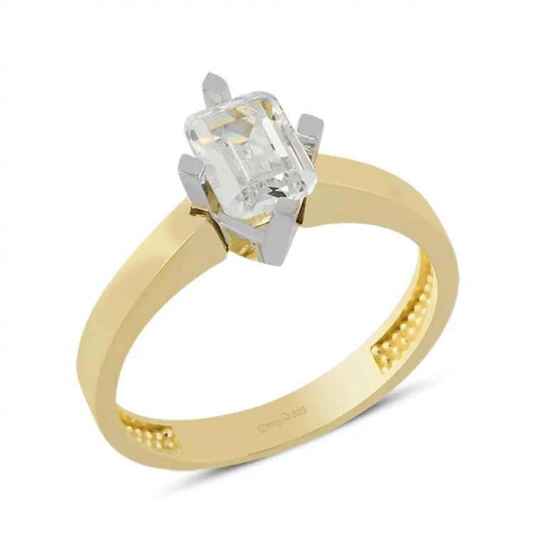 Altın Yüzükler modellerinden Tektaş Baklava Desenli Kare Taşlı Yüzük ürünümüz,
