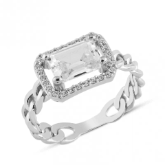 Altın Yüzükler modellerinden Beyaz Altın Baget Zincir Halka Yüzük ürünümüz,