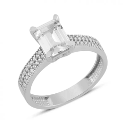 Altın Yüzükler modellerinden Beyaz Altın Çift Sıra Taşlı Baget Yüzük ürünümüz,