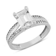 Altın Yüzükler modellerinden Beyaz Altın Sıra Taşlı Baget Yüzük ürünümüz,