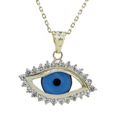 Altın Kolye Modelleri modellerinden Beyaz Kiprikli Altın Göz Kolye ürünümüz,