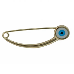Altın Çocuk Takıları modellerinden Beyaz Nazar Boncuklu Altın İğne ürünümüz,