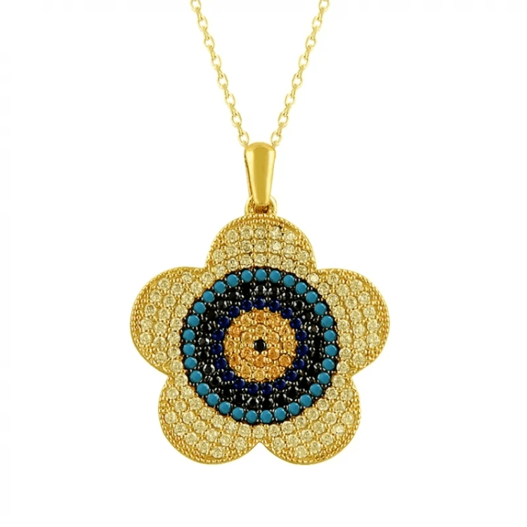 Altın Kolye Modelleri modellerinden Çiçek Şekilli Nazar Boncuğu Altın Kolye KLF1295 ürünümüz,