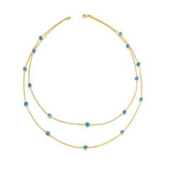 Altın Kolye Modelleri modellerinden Çift Zincir Mavi Boncuklu Kolye ürünümüz,