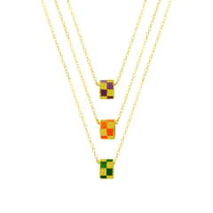 Altın Kolye Modelleri modellerinden Damalı Renkli Taşlı Altın Kolye ürünümüz,