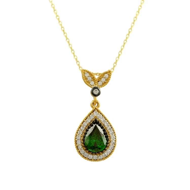 Altın Kolye Modelleri modellerinden Damla Yeşil Taşlı Altın Kolye KLF1235 ürünümüz,