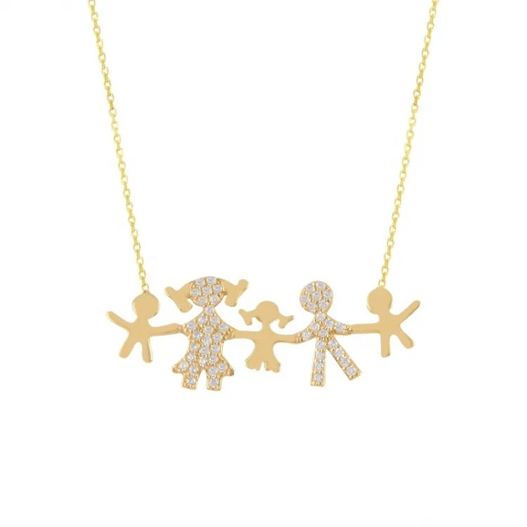 Altın Kolye Modelleri modellerinden Elele 3 Çocuklu Aile Kolyesi ürünümüz,