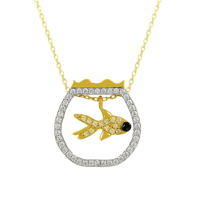 Altın Kolye Modelleri modellerinden Fanus İçinde Balık Altın Kolye KLF1344 ürünümüz,