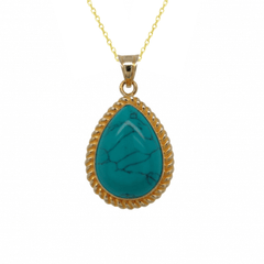 Altın Kolye Modelleri modellerinden Firuze Damla Taş Örgü Motifli Kolye ürünümüz,