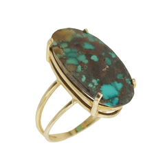 Altın Yüzükler modellerinden Firuze Puntolu Oval Altın Yüzük ürünümüz,