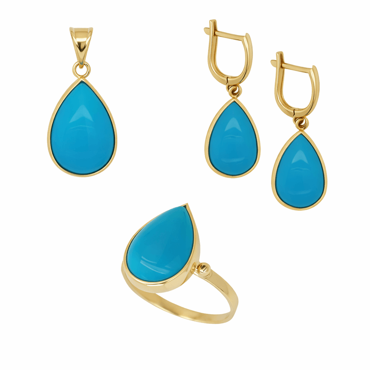 Taşlı Üçlü Set Takım Modelleri modellerinden Firuze Taş Takım Damla ürünümüz,