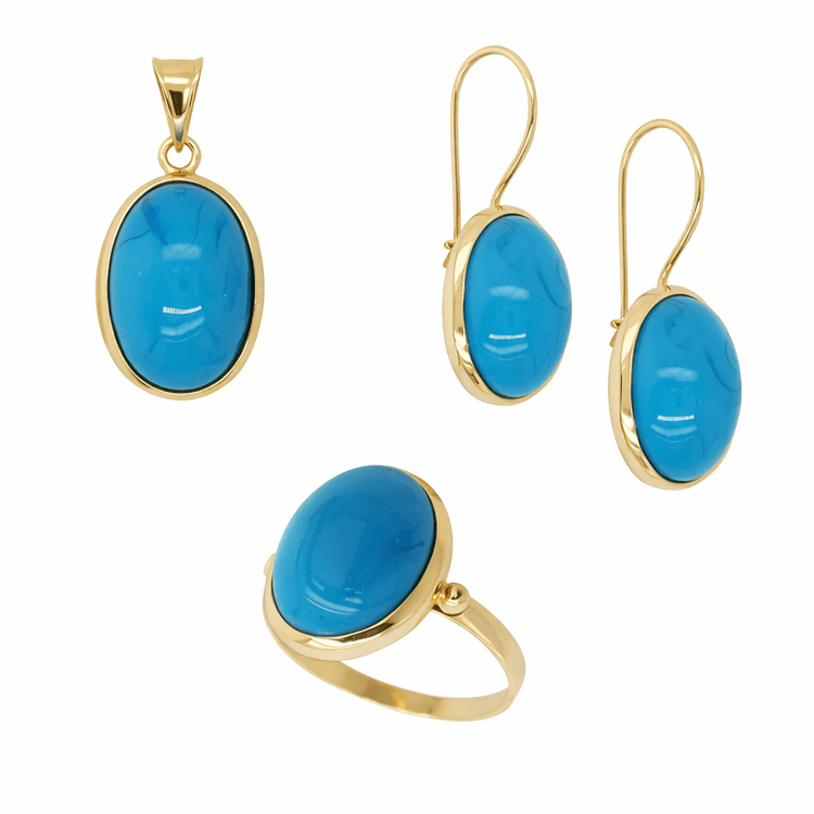 Taşlı Üçlü Set Takım Modelleri modellerinden Firuze Taş Takım Oval Altın ürünümüz,