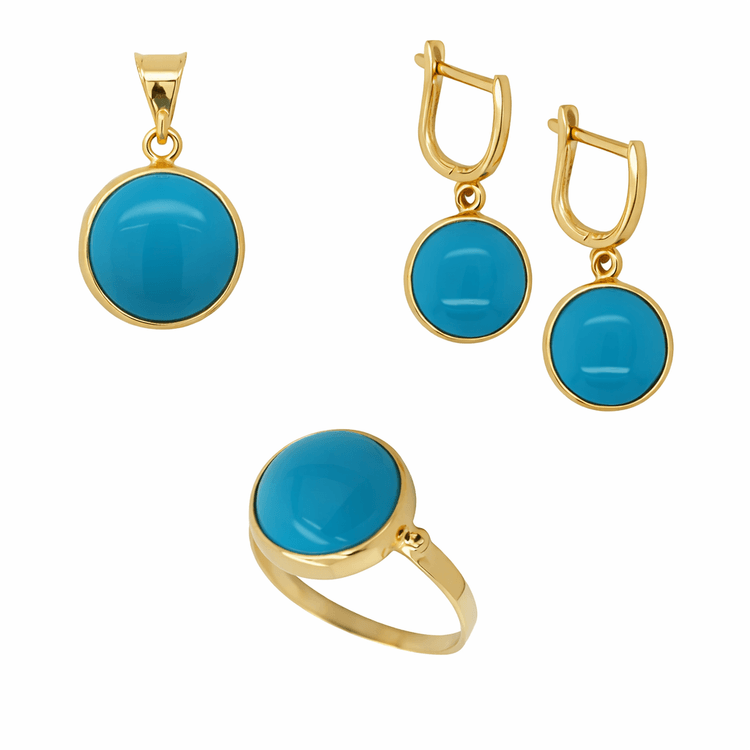 Taşlı Üçlü Set Takım Modelleri modellerinden Firuze Taş Takım Yuvarlak ürünümüz,