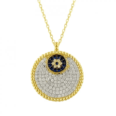 Altın Kolye Modelleri modellerinden Göz Boncuklu Daire Taşlı Altın Kolye KLF952 ürünümüz,