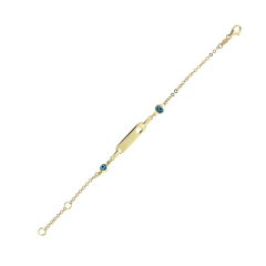 Altın Çocuk Takıları modellerinden Göz Boncuklu Kalp Dekorlu Künye ürünümüz,
