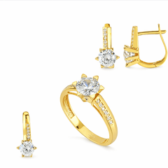 Taşlı Üçlü Set Takım Modelleri modellerinden Güneş Motifli Tektaş Set ürünümüz, 6.56 gr ağırlığında 14 Ayar Altın.
