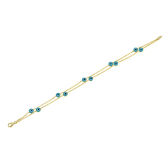 Altın Bileklik Modelleri modellerinden İki Sıra Boncuklu Mavi Altın Bileklik ürünümüz,