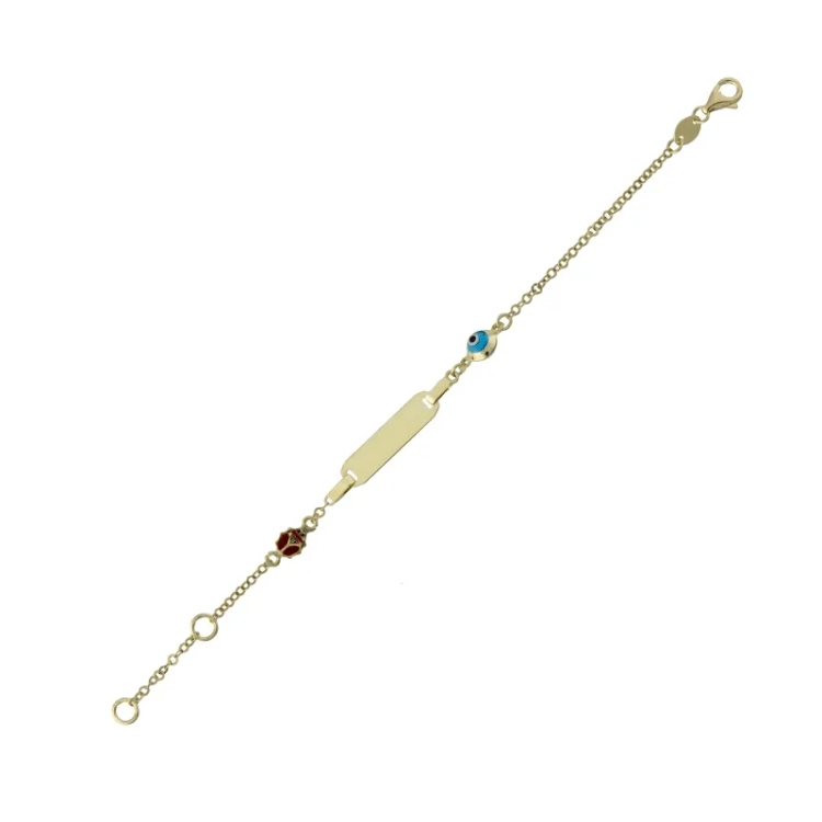 Altın Çocuk Takıları modellerinden İsim Plakalı Uğur Böcekli Künye ürünümüz,