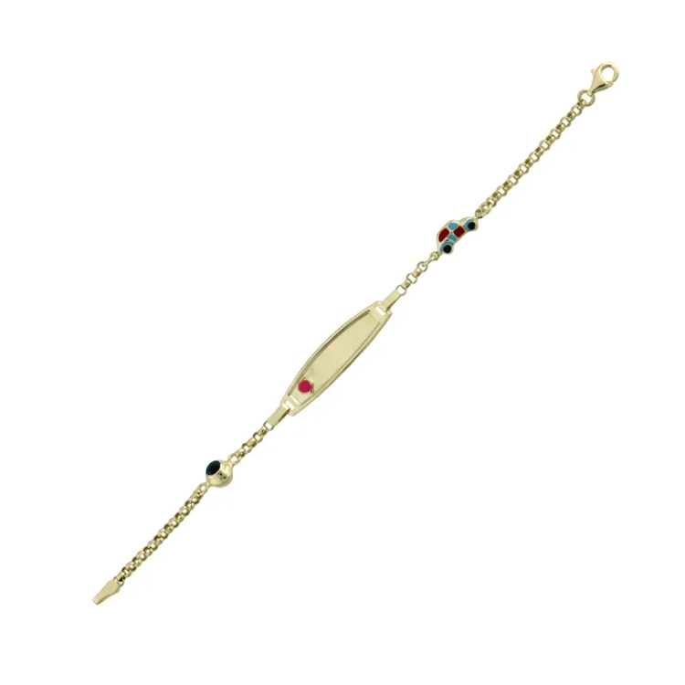 Altın Çocuk Takıları modellerinden İsim Yazılabilen Mavi Araba Künye ürünümüz,