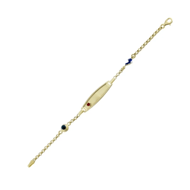 Altın Çocuk Takıları modellerinden İsim Yazılabilen Mavi Balıklı Künye ürünümüz,