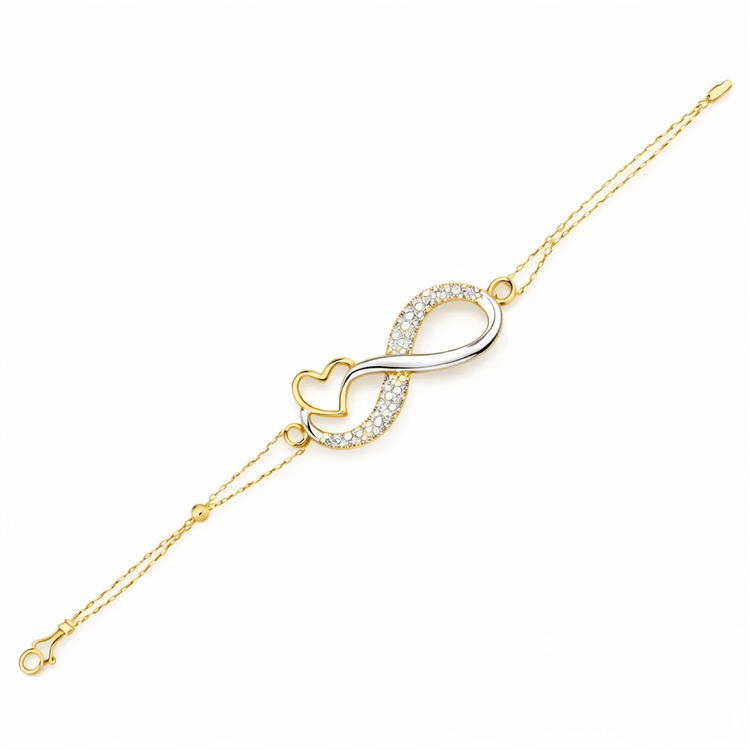Altın Bileklik Modelleri modellerinden Kalp ve Sonsuzluk Bilekliği ürünümüz,